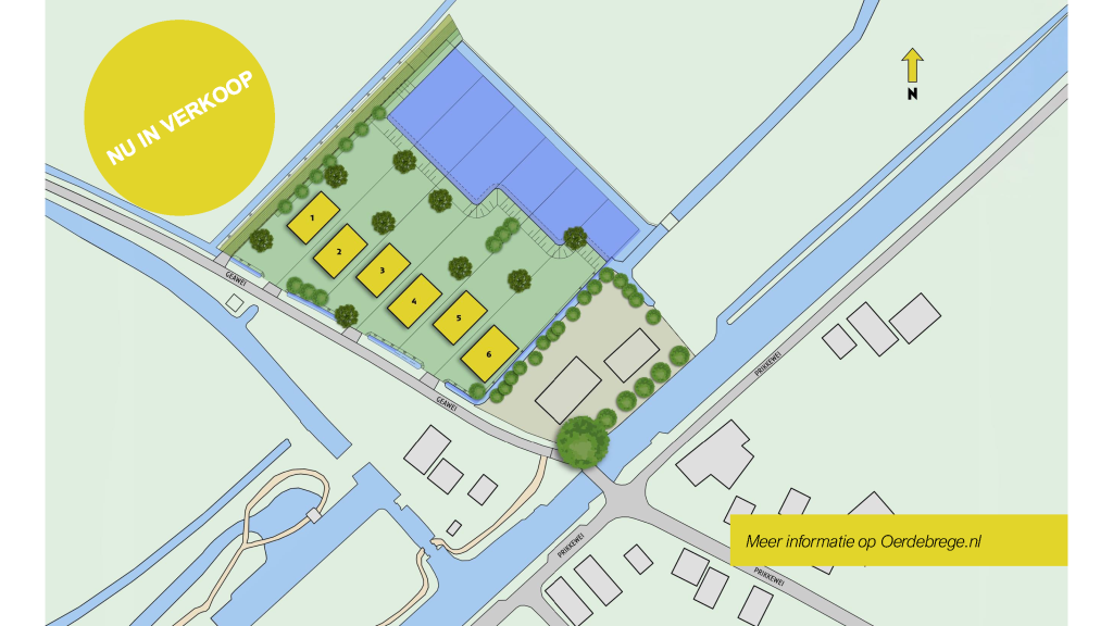 Wakker worden met uitzicht over de landerijen, frisse buitenlucht, het geluid van ruisend gras. Dat krijg je bij je eigen gebouwde woning in Oer de Brêge. Het project is gelegen in het Friese dorp Nij Beets. De locatie biedt je rust en ruimte van het platteland, gecombineerd met het gemak van nabijgelegen voorzieningen. Het plan is omgeven door groen en water, wat een rustige landelijke omgeving creëert. De zes bouwkavels bieden je de mogelijkheid om je eigen woning te bouwen.